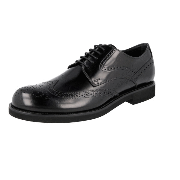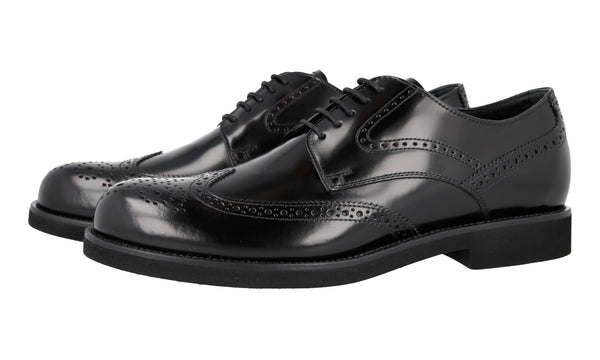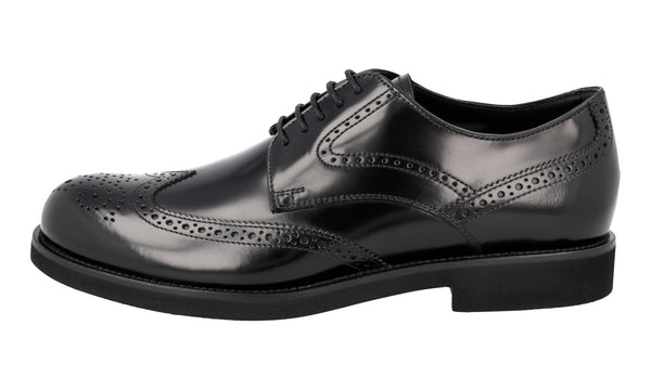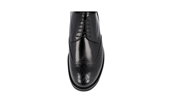 Prada Men's Black Brushed Spazzolato Leather Square Oxford Spray Runway Business Shoes 2EA165