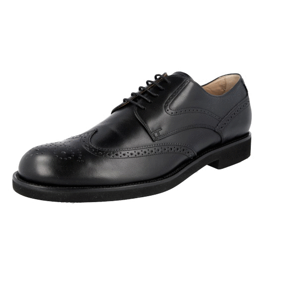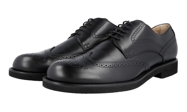Prada Men's Black Brushed Spazzolato Leather Square Oxford Spray Runway Business Shoes 2EA165