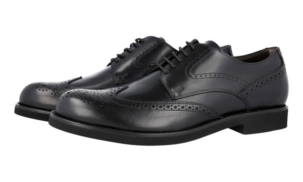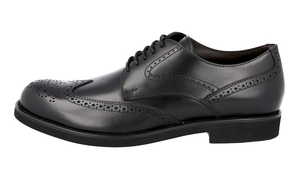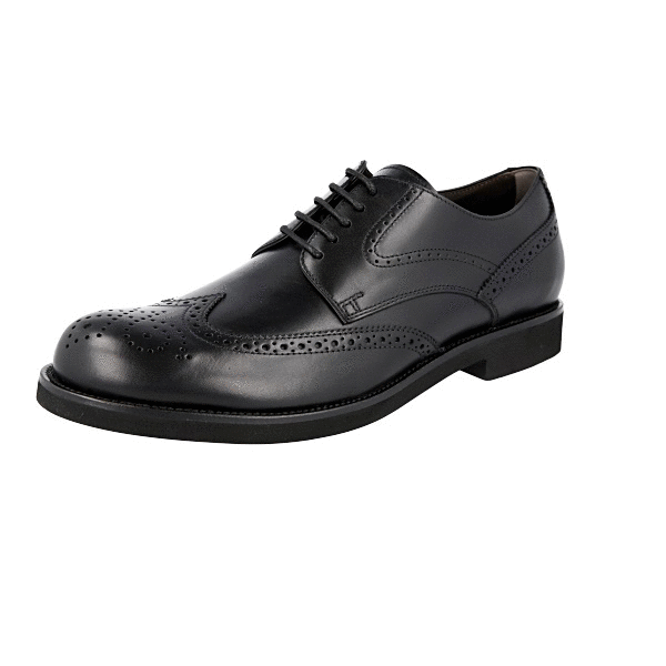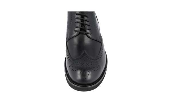 Prada Men's Black Brushed Spazzolato Leather Square Oxford Spray Runway Business Shoes 2EA165