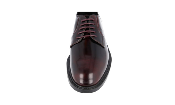 Prada Men's Black Brushed Spazzolato Leather Square Oxford Spray Runway Business Shoes 2EA165
