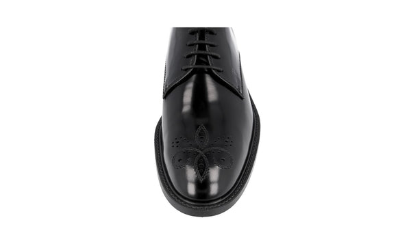 Prada Men's Black Brushed Spazzolato Leather Square Oxford Spray Runway Business Shoes 2EA165