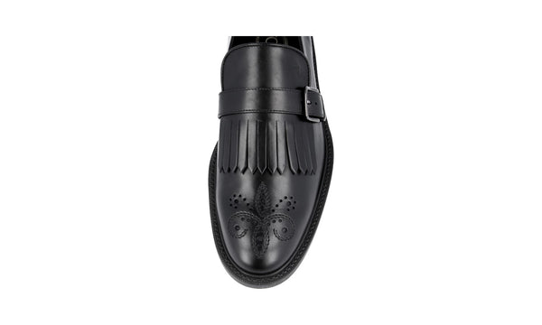 Prada Men's Black Brushed Spazzolato Leather Square Oxford Spray Runway Business Shoes 2EA165