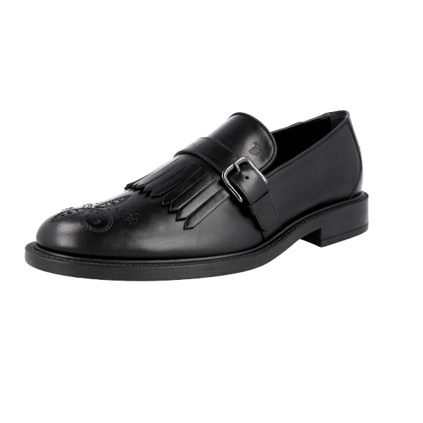 Tod's Men's Black Full Brogue Leather Kiltie Double Monk Strap Brogue Business Shoes XXM0RS