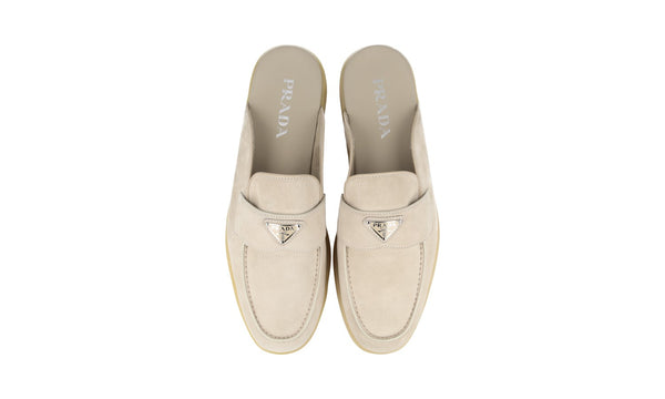 Prada Men's Beige Leather Mules Slipper Sandals Sandalen Loafers 2OG125
