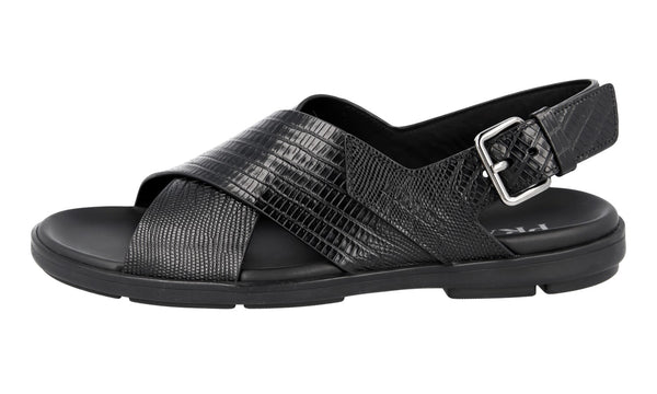 Prada Men's Black Leather Runway Laufsteg Square Eckig Sandals 2X3071