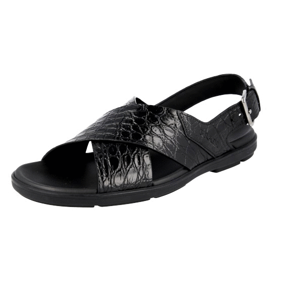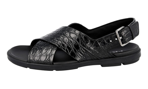 Prada Men's Black Leather Runway Laufsteg Square Eckig Sandals 2X3071