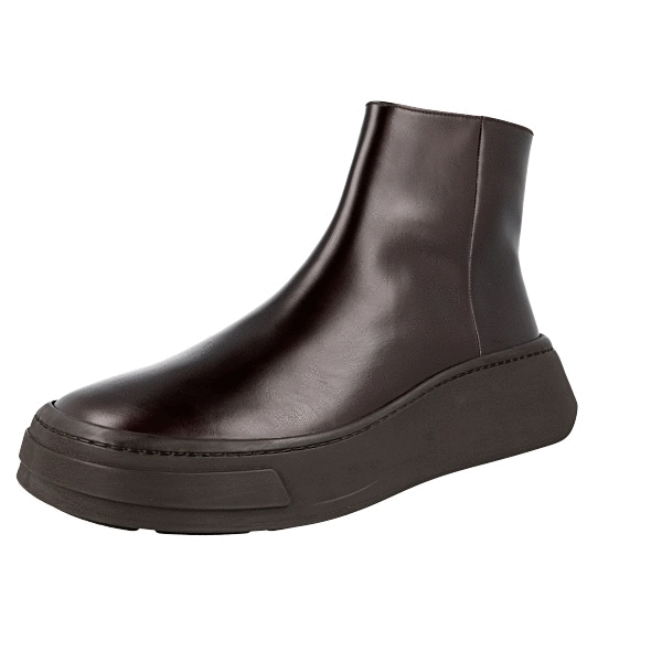 Prada Men's Brown Brushed Spazzolato Leather High-Top Sneaker 2TG168