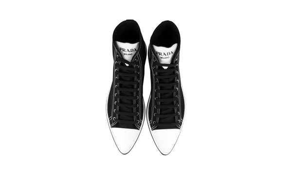 Prada Men's Black Synthesis Pointy Pointed Toe High-Top Sneaker 2TG177