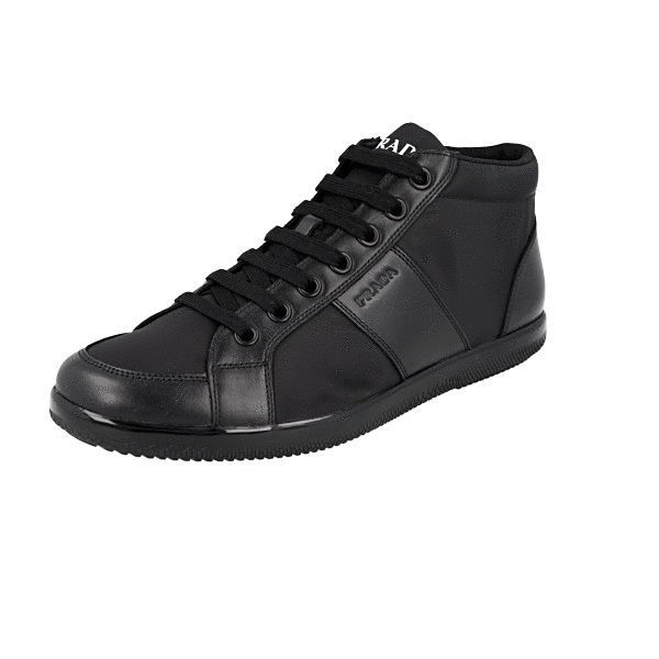 Prada Men's Black Leather High-Top Sneaker 4U2763