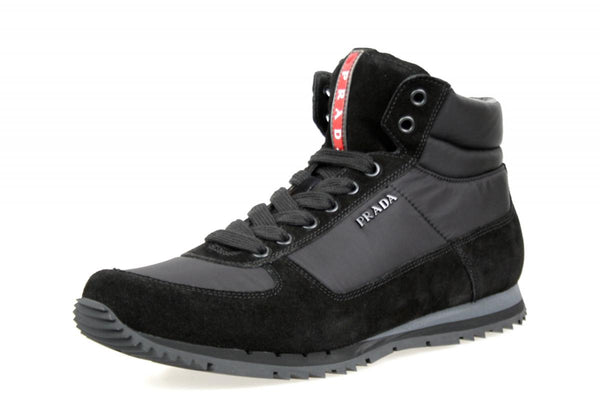 Prada Men's Black Leather High-Top Sneaker 4T2782