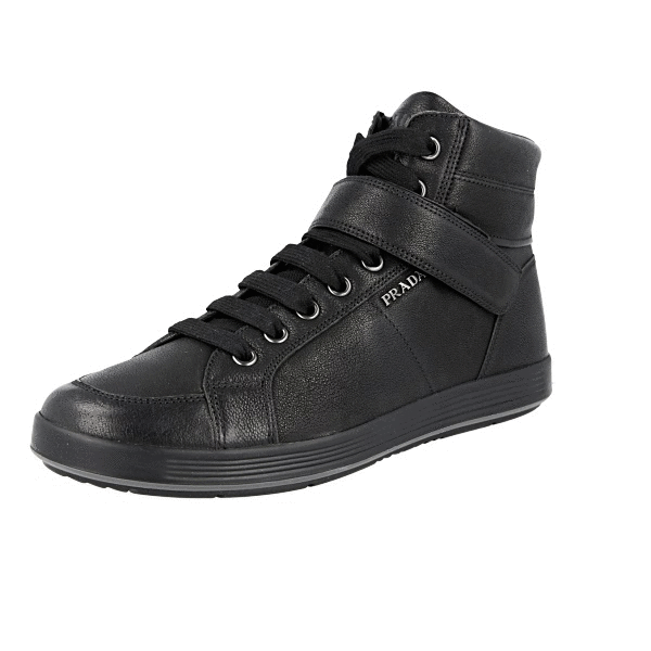 Prada Men's Black Leather High-Top Sneaker 4U2763