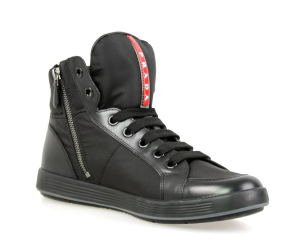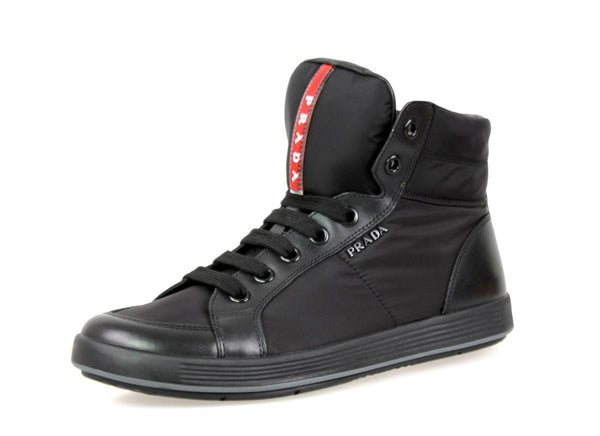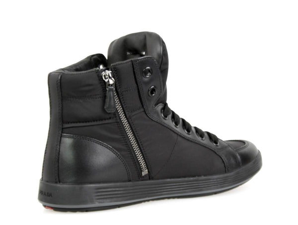 Prada Men's Black Leather High-Top Sneaker 4U2763