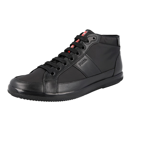Prada Men's Black Leather High-Top Sneaker 4T2878