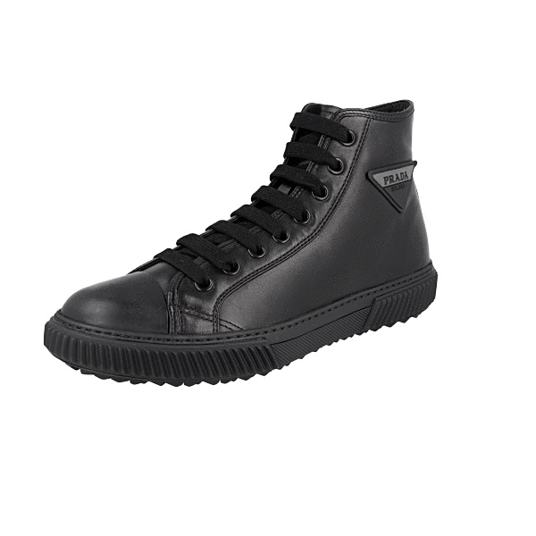 Prada Men's Black Leather High-Top Sneaker 4U2763