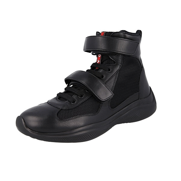 Prada Men's Black Leather Americas Cup High-Top Sneaker 4T3326