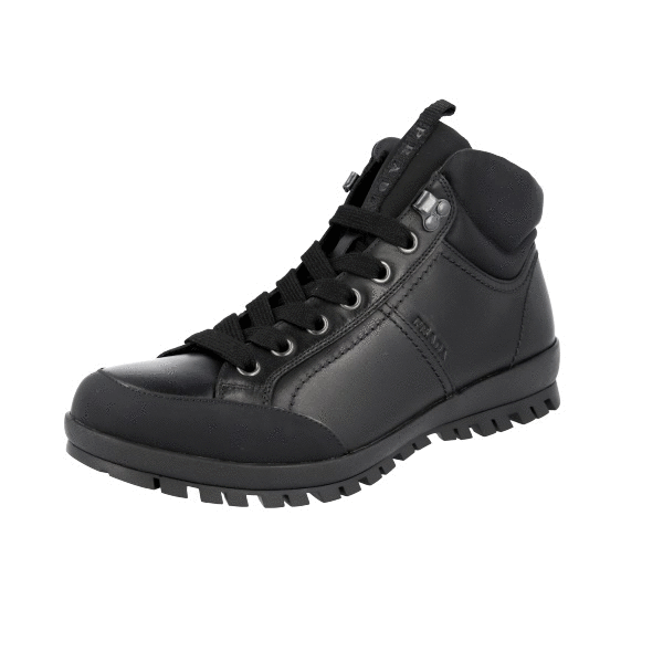 Prada Men's Black Leather High-Top Sneaker 4U2763