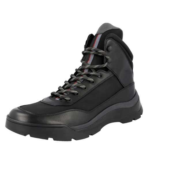 Prada Men's Black Leather High-Top Sneaker 4T3374