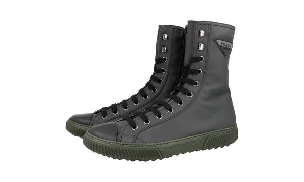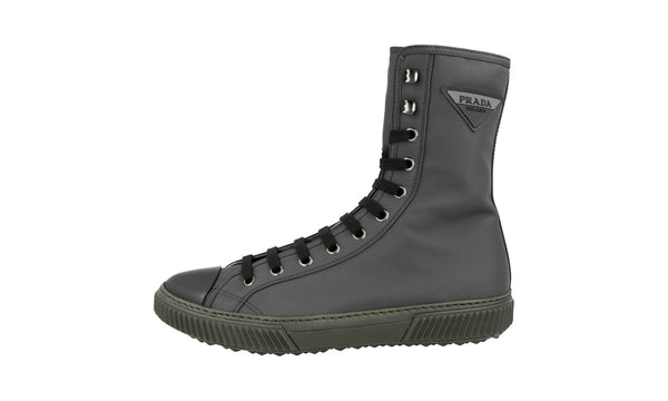 Prada Men's Grey Stratus Combat Boots High-Top Sneaker 4U3274