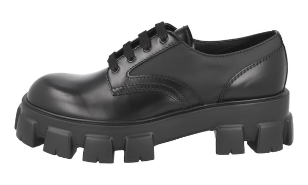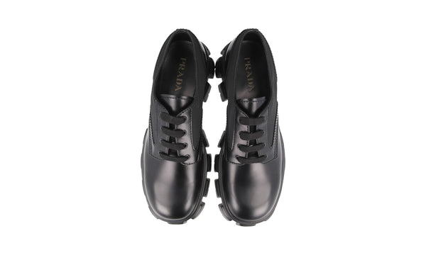 Prada Men's Black Brushed Spazzolato Leather Monolith Lace-up Shoes 2EE342
