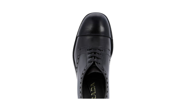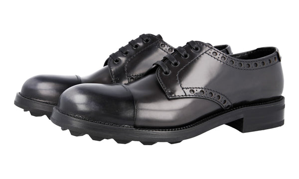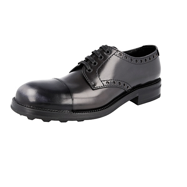 Prada Men's Black Brushed Spazzolato Leather Derby Lace-up Shoes 2EE289