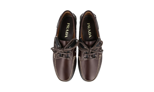 Prada Men's Brown Leather Deck Lace-up Shoes 2EG269