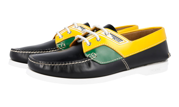 Prada Men's Multicoloured Brushed Spazzolato Leather Boat Sail Yacht Loafer Lace-up Shoes 2EG270