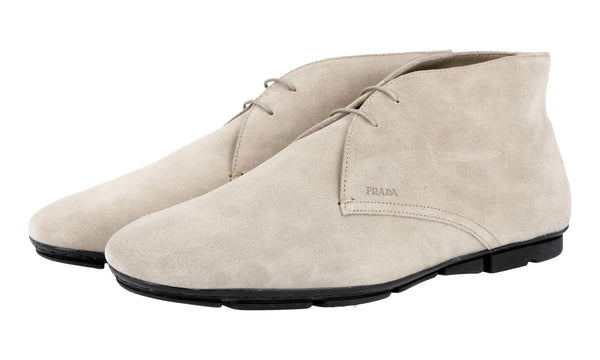Prada Men's Beige Leather Chukka Lace-up Shoes 2TD004