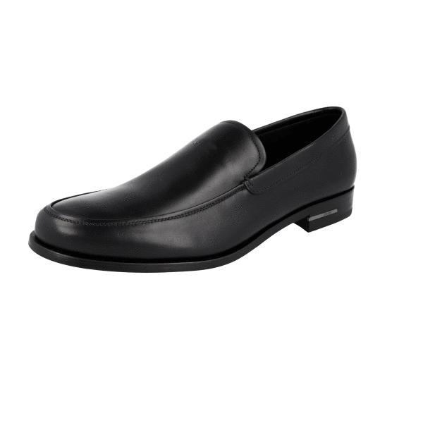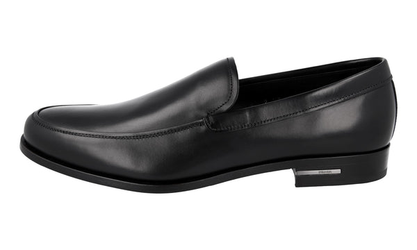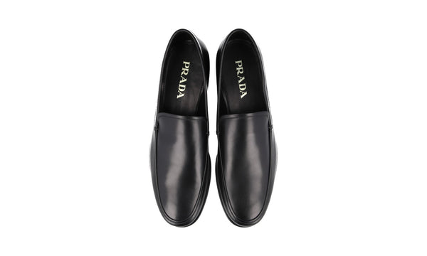 Prada Men's Black Brushed Spazzolato Leather Chocolate Artist Performer Loafer Loafers 2DE127