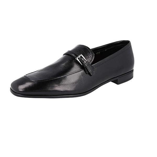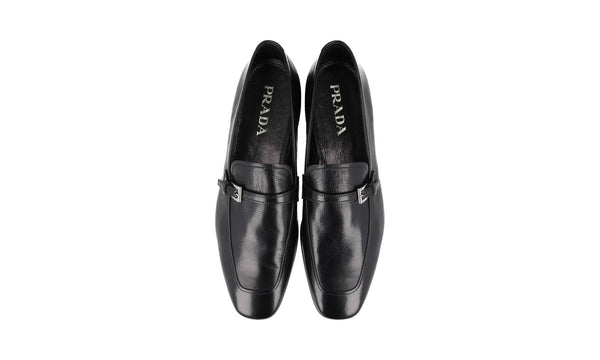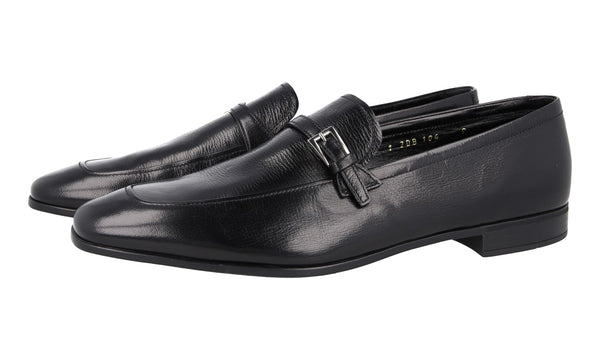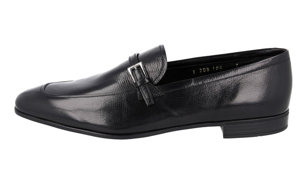 Prada Men's Black Brushed Spazzolato Leather Chocolate Artist Performer Loafer Loafers 2DE127