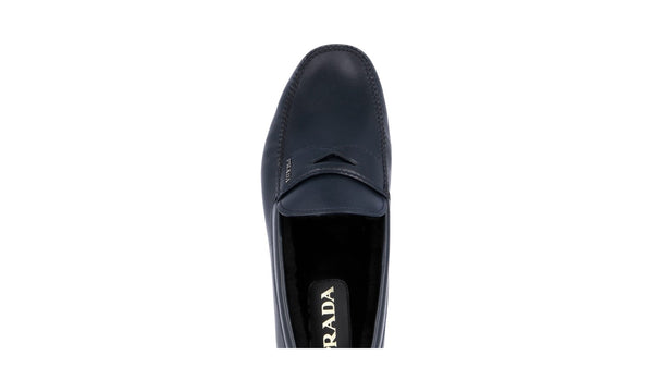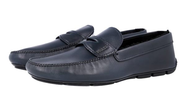 Prada Men's Blue Leather Shearling Driving Loafer Loafers 2DD011