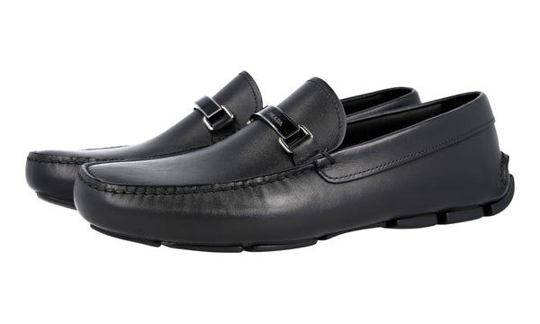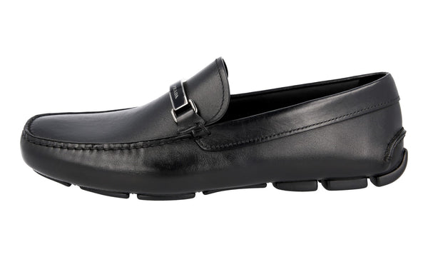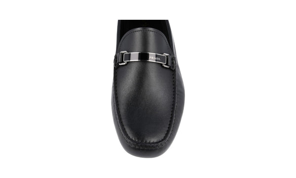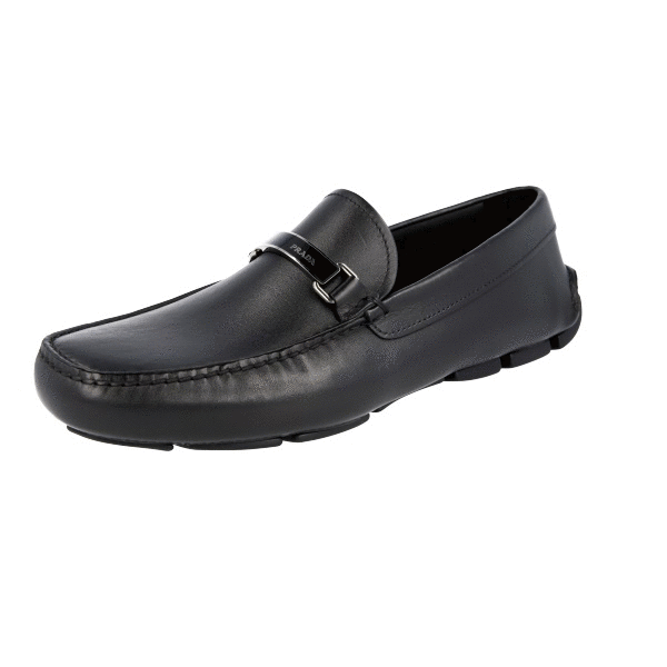 Prada Men's Black Brushed Spazzolato Leather Chocolate Artist Performer Loafer Loafers 2DE127