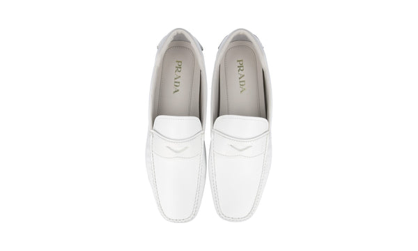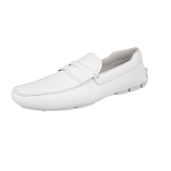 Prada Men's White Leather Driving Shoes Loafers 2DD116