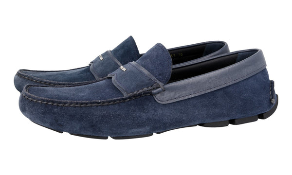 Prada Men's Blue Leather Driving Logo Loafers 2DD137