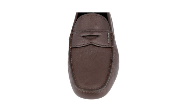 Prada Men's Brown Saffiano Leather Driving Loafer Moccasin Loafers 2DD151
