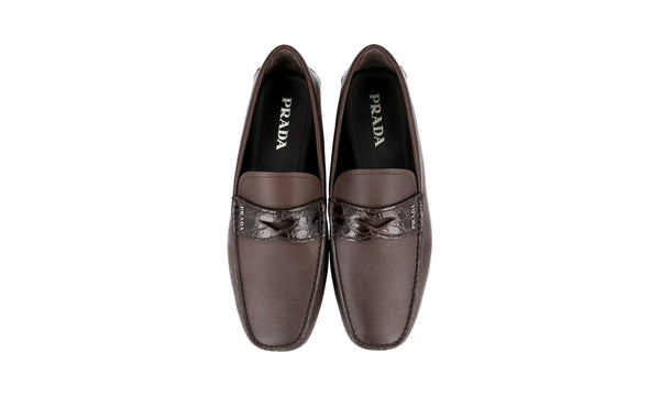 Prada Men's Brown Saffiano Leather Croc Driving Loafer Loafers 2DD151
