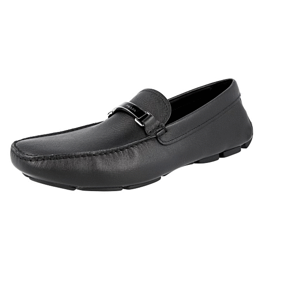 Prada Men's Black Saffiano Leather Driving Loafers 2DD153