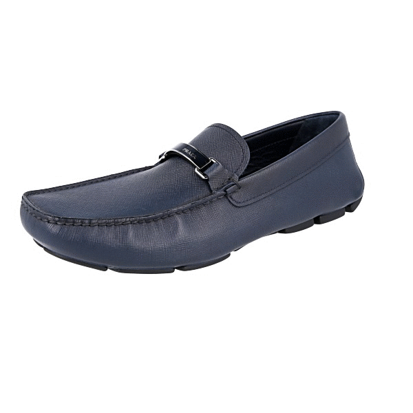 Prada Men's Blue Saffiano Leather Logo Loafer Loafers 2DD153