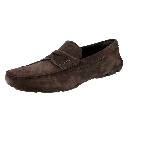 Prada Men's Brown Leather Driving Loafers 2DD155
