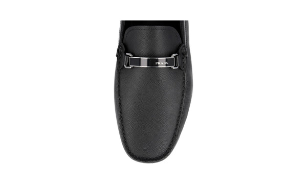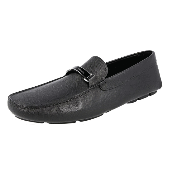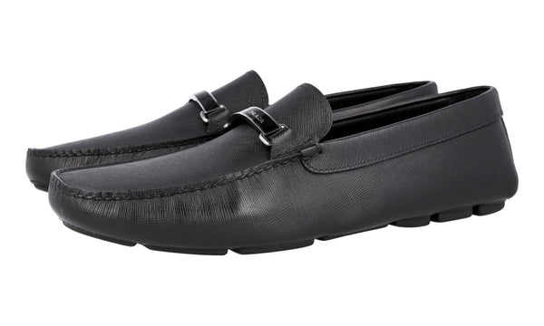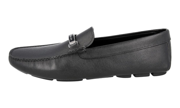 Prada Men's Black Saffiano Leather Logo Driving Loafers 2DD159