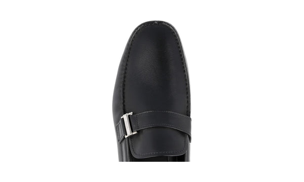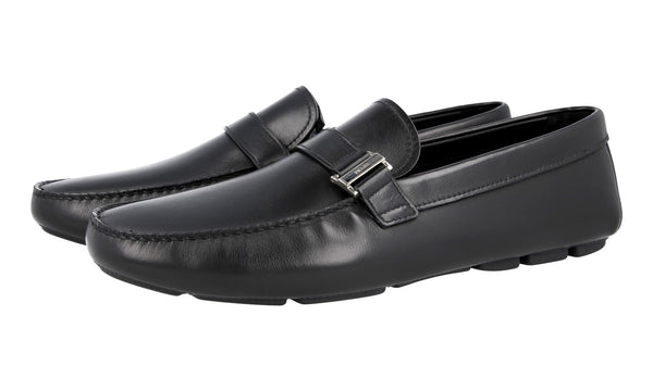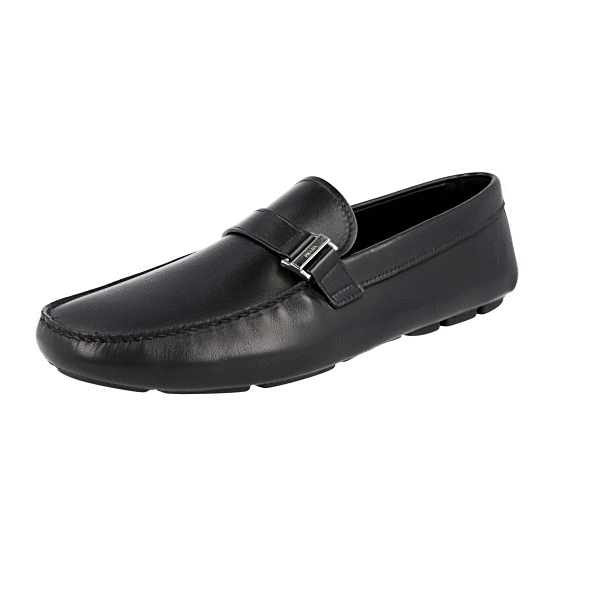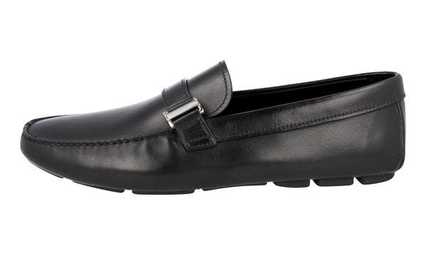 Prada Men's Black Leather Driving Logo Loafers 2DD160