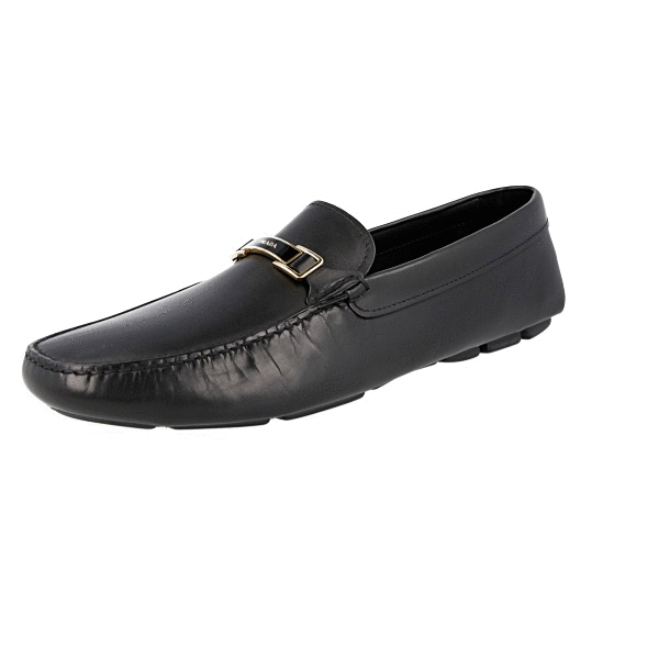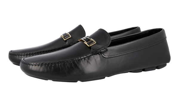Prada Men's Black Leather Logo Driving Loafers 2DD163