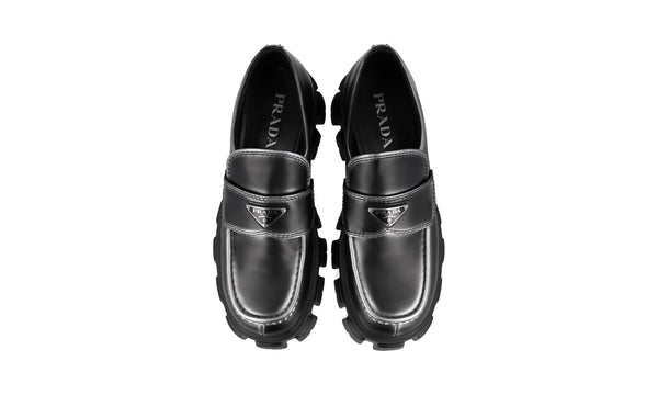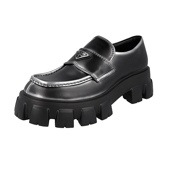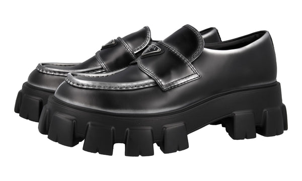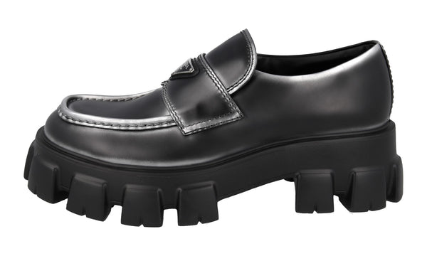 Prada Men's Black Leather Chocolate Monolith Loafers 2DE129