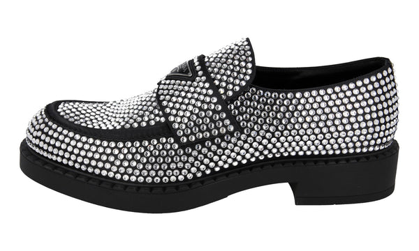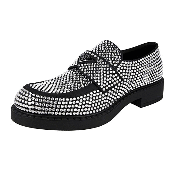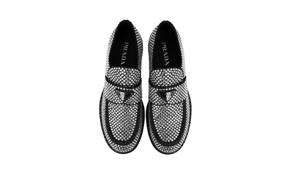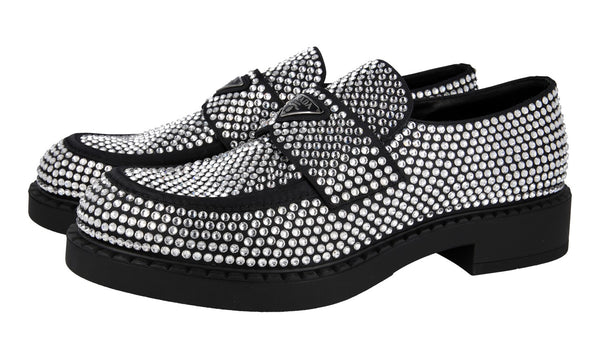 Prada Men's Black Leather Double Chocolate Crystal Loafers 2DE135