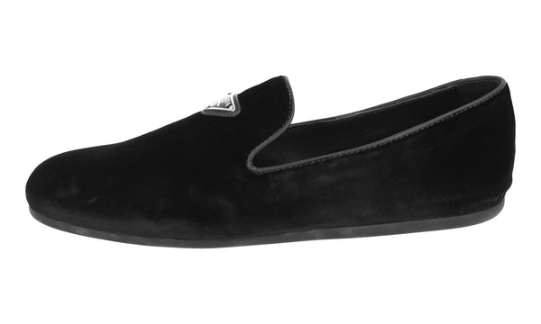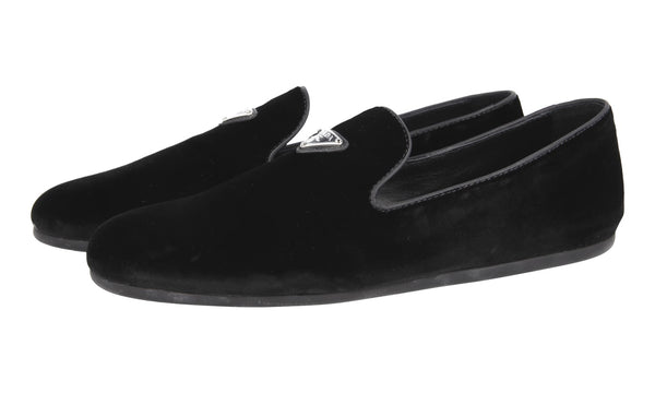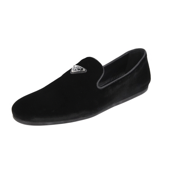 Prada Men's Black Leather Velvet Logo Loafer Slipper Loafers 2S2974
