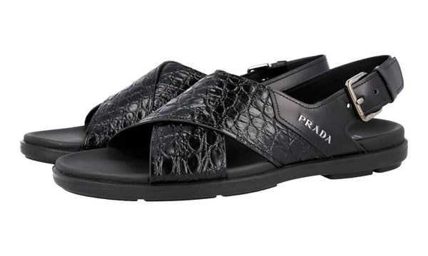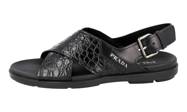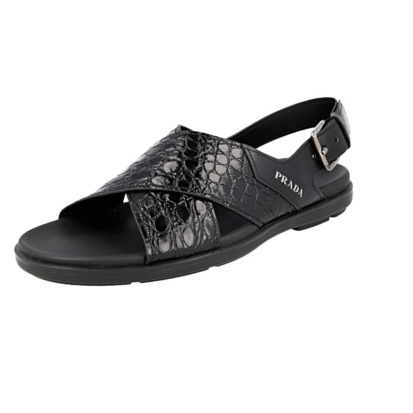 Prada Men's Black Leather Runway Laufsteg Square Eckig Sandals 2X3071