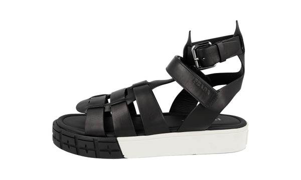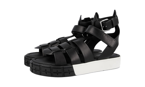 Prada Men's Black Leather Cassetta Wheel Sandals 2X3039