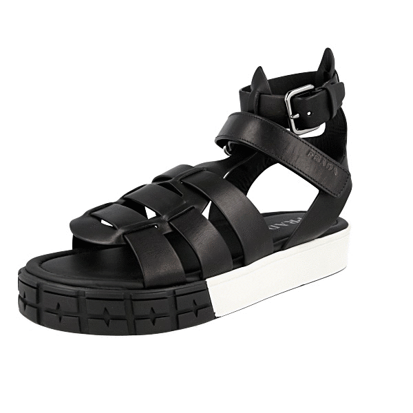 Prada Men's Black Leather Runway Laufsteg Square Eckig Sandals 2X3071