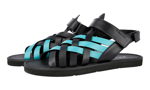 Prada Men's Black Leather Runway Laufsteg Square Eckig Sandals 2X3071