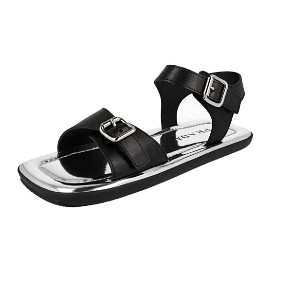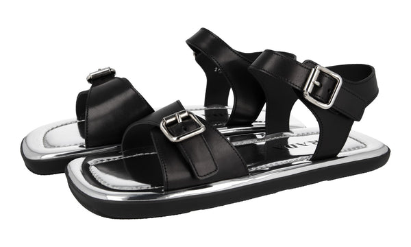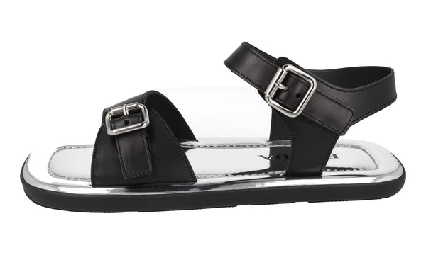 Prada Men's Black Leather Runway Laufsteg Square Eckig Sandals 2X3071