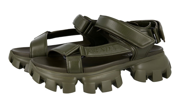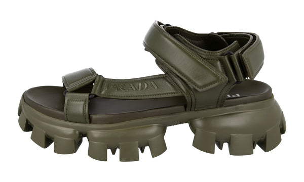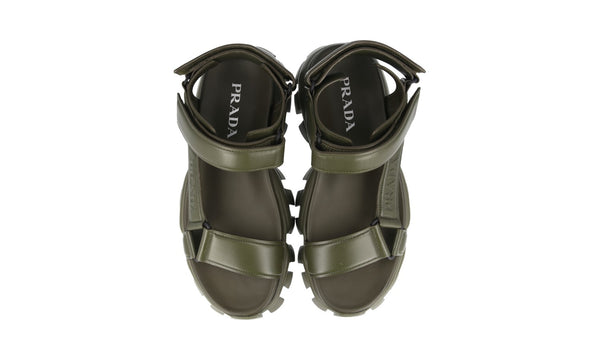Prada Men's Green Leather Cloudbust Thunder Sport Sandals Padded Nappa Sandals 2X3077